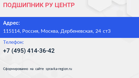 ПОДШИПНИК.РУ ЦЕНТР по адресу 115114, Россия, Москва, Дербеневская, 24 ст3 в дальнейшем Организация, размещена в следующих категориях: