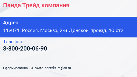 Панда Трейд, компания по адресу 119071, Россия, Москва, 2-й Донской проезд, 10 ст2 в дальнейшем Организация, размещена в следующих категориях:
