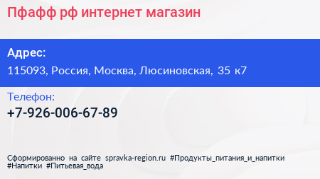 Пфафф.рф, интернет-магазин по адресу 115093, Россия, Москва, Люсиновская, 35 к7 в дальнейшем Организация, размещена в следующих категориях: