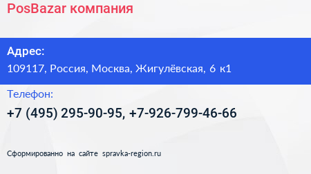 PosBazar, компания по адресу 109117, Россия, Москва, Жигулёвская, 6 к1 в дальнейшем Организация, размещена в следующих категориях: