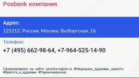 Posbank, компания по адресу 125212, Россия, Москва, Выборгская, 16 в дальнейшем Организация, размещена в следующих категориях: