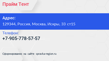 Прайм-Тент по адресу 129344, Россия, Москва, Искры, 33 ст15 в дальнейшем Организация, размещена в следующих категориях: