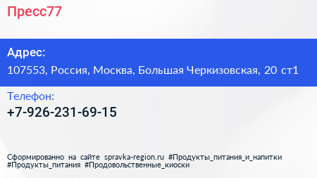 Пресс77 по адресу 107553, Россия, Москва, Большая Черкизовская, 20 ст1 в дальнейшем Организация, размещена в следующих категориях: