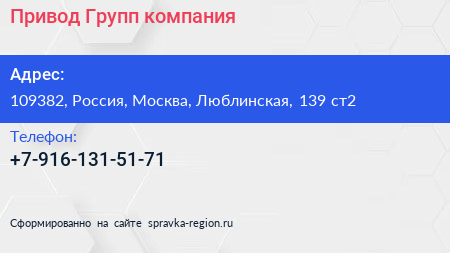 Привод Групп, компания по адресу 109382, Россия, Москва, Люблинская, 139 ст2 в дальнейшем Организация, размещена в следующих категориях: