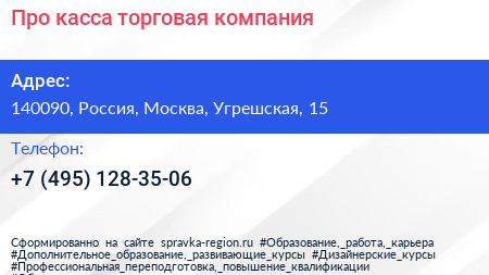 Про-касса, торговая компания по адресу 140090, Россия, Москва, Угрешская, 15 в дальнейшем Организация, размещена в следующих категориях: