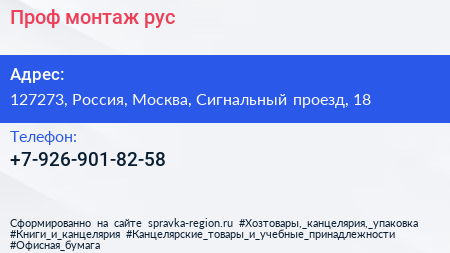Проф-монтаж.рус по адресу 127273, Россия, Москва, Сигнальный проезд, 18 в дальнейшем Организация, размещена в следующих категориях: