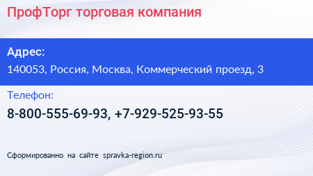 ПрофТорг, торговая компания по адресу 140053, Россия, Москва, Коммерческий проезд, 3 в дальнейшем Организация, размещена в следующих категориях: