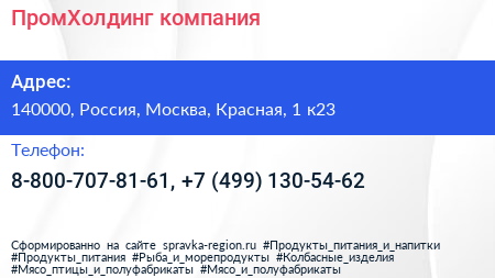 ПромХолдинг, компания по адресу 140000, Россия, Москва, Красная, 1 к23 в дальнейшем Организация, размещена в следующих категориях: