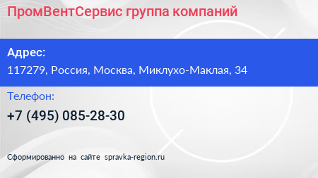 ПромВентСервис, группа компаний по адресу 117279, Россия, Москва, Миклухо-Маклая, 34 в дальнейшем Организация, размещена в следующих категориях: