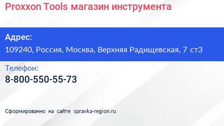 Proxxon-Tools, магазин инструмента по адресу 109240, Россия, Москва, Верхняя Радищевская, 7 ст3 в дальнейшем Организация, размещена в следующих категориях: