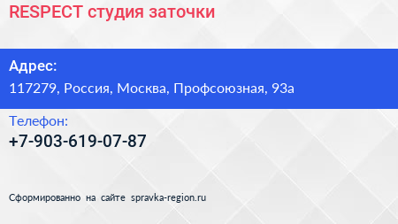 RESPECT, студия заточки по адресу 117279, Россия, Москва, Профсоюзная, 93а в дальнейшем Организация, размещена в следующих категориях: