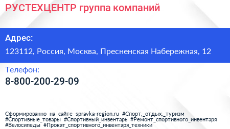 РУСТЕХЦЕНТР, группа компаний по адресу 123112, Россия, Москва, Пресненская Набережная, 12 в дальнейшем Организация, размещена в следующих категориях: