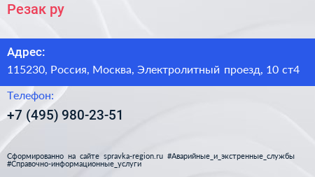 Резак.ру по адресу 115230, Россия, Москва, Электролитный проезд, 10 ст4 в дальнейшем Организация, размещена в следующих категориях: