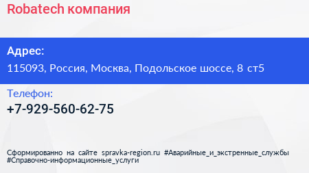 Robatech, компания по адресу 115093, Россия, Москва, Подольское шоссе, 8 ст5 в дальнейшем Организация, размещена в следующих категориях:
