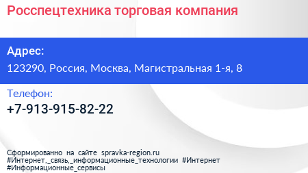 Росспецтехника, торговая компания по адресу 123290, Россия, Москва, Магистральная 1-я, 8 в дальнейшем Организация, размещена в следующих категориях: