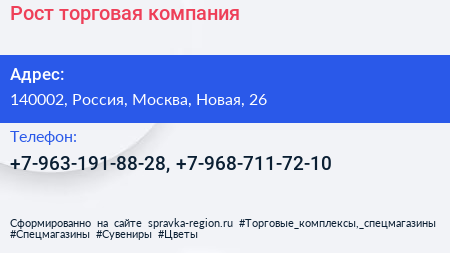 Рост, торговая компания по адресу 140002, Россия, Москва, Новая, 26 в дальнейшем Организация, размещена в следующих категориях: