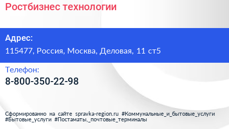 Ростбизнес технологии по адресу 115477, Россия, Москва, Деловая, 11 ст5 в дальнейшем Организация, размещена в следующих категориях: