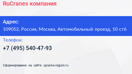 RuCranes, компания по адресу 109052, Россия, Москва, Автомобильный проезд, 10 ст6 в дальнейшем Организация, размещена в следующих категориях: