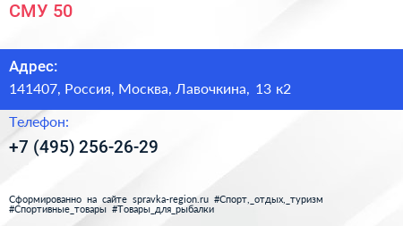 СМУ-50 по адресу 141407, Россия, Москва, Лавочкина, 13 к2 в дальнейшем Организация, размещена в следующих категориях: