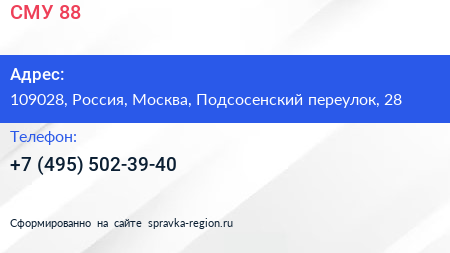 СМУ 88 по адресу 109028, Россия, Москва, Подсосенский переулок, 28 в дальнейшем Организация, размещена в следующих категориях: