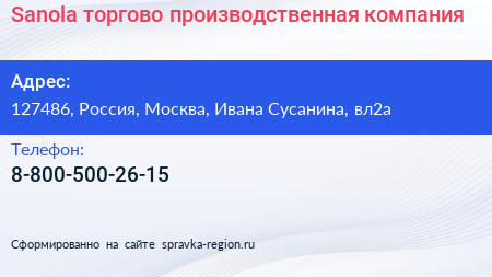 Sanola, торгово-производственная компания по адресу 127486, Россия, Москва, Ивана Сусанина, вл2а в дальнейшем Организация, размещена в следующих категориях: