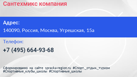 Сантехмикс, компания по адресу 140090, Россия, Москва, Угрешская, 15а в дальнейшем Организация, размещена в следующих категориях:
