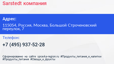 Sarstedt, компания по адресу 115054, Россия, Москва, Большой Строченовский переулок, 7 в дальнейшем Организация, размещена в следующих категориях: