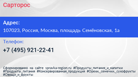 Сарторос по адресу 107023, Россия, Москва, площадь Семёновская, 1а в дальнейшем Организация, размещена в следующих категориях: