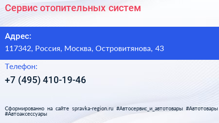 Сервис отопительных систем по адресу 117342, Россия, Москва, Островитянова, 43 в дальнейшем Организация, размещена в следующих категориях: