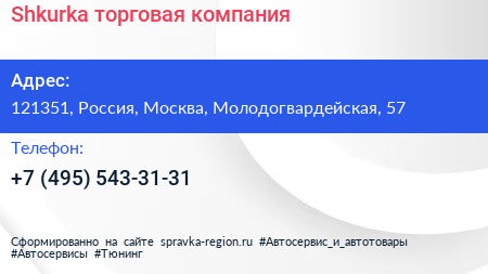 Shkurka, торговая компания по адресу 121351, Россия, Москва, Молодогвардейская, 57 в дальнейшем Организация, размещена в следующих категориях: