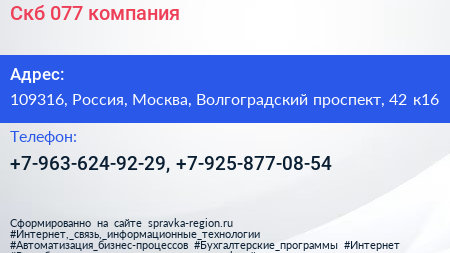 Скб-077, компания по адресу 109316, Россия, Москва, Волгоградский проспект, 42 к16 в дальнейшем Организация, размещена в следующих категориях: