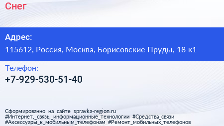 Снег по адресу 115612, Россия, Москва, Борисовские Пруды, 18 к1 в дальнейшем Организация, размещена в следующих категориях: