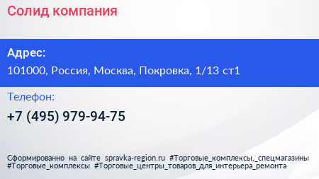 Солид, компания по адресу 101000, Россия, Москва, Покровка, 1/13 ст1 в дальнейшем Организация, размещена в следующих категориях: