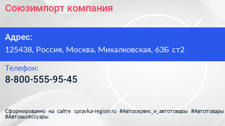 Союзимпорт, компания по адресу 125438, Россия, Москва, Михалковская, 63Б ст2 в дальнейшем Организация, размещена в следующих категориях: