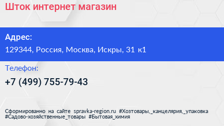 Шток, интернет-магазин по адресу 129344, Россия, Москва, Искры, 31 к1 в дальнейшем Организация, размещена в следующих категориях: