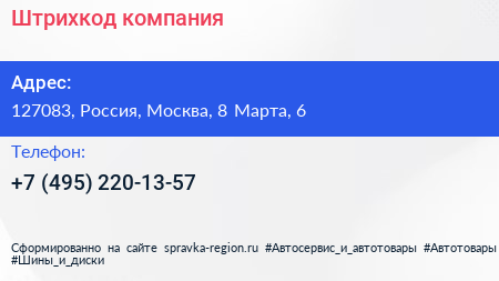 Штрихкод, компания по адресу 127083, Россия, Москва, 8 Марта, 6 в дальнейшем Организация, размещена в следующих категориях: