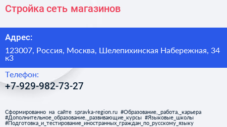 Стройка, сеть магазинов по адресу 123007, Россия, Москва, Шелепихинская Набережная, 34 к3 в дальнейшем Организация, размещена в следующих категориях: