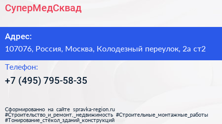 СуперМедСквад по адресу 107076, Россия, Москва, Колодезный переулок, 2а ст2 в дальнейшем Организация, размещена в следующих категориях: