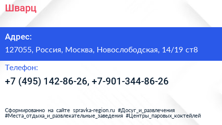 Шварц по адресу 127055, Россия, Москва, Новослободская, 14/19 ст8 в дальнейшем Организация, размещена в следующих категориях: