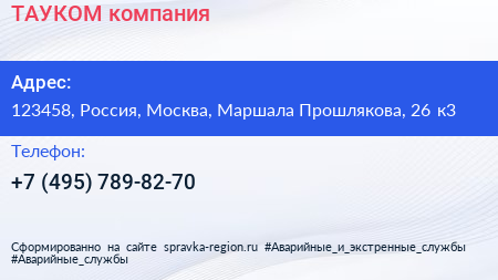ТАУКОМ, компания по адресу 123458, Россия, Москва, Маршала Прошлякова, 26 к3 в дальнейшем Организация, размещена в следующих категориях:
