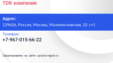 TDR, компания по адресу 129626, Россия, Москва, Маломосковская, 22 ст1 в дальнейшем Организация, размещена в следующих категориях: