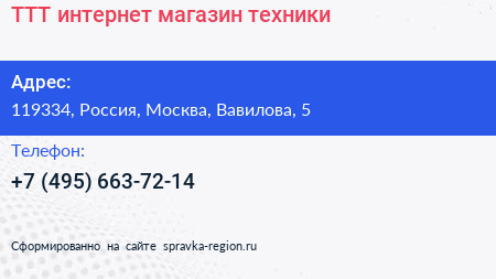 ТТТ, интернет-магазин техники по адресу 119334, Россия, Москва, Вавилова, 5 в дальнейшем Организация, размещена в следующих категориях: