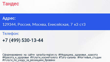 Тандес по адресу 129344, Россия, Москва, Енисейская, 7 к3 ст3 в дальнейшем Организация, размещена в следующих категориях: