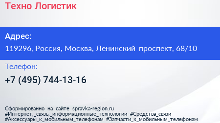 Техно Логистик по адресу 119296, Россия, Москва, Ленинский проспект, 68/10 в дальнейшем Организация, размещена в следующих категориях: