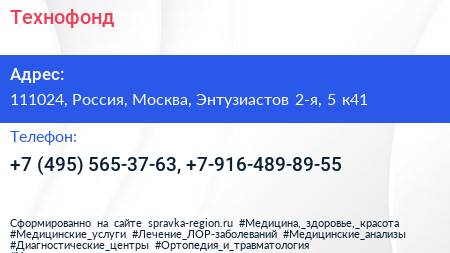 Технофонд по адресу 111024, Россия, Москва, Энтузиастов 2-я, 5 к41 в дальнейшем Организация, размещена в следующих категориях: