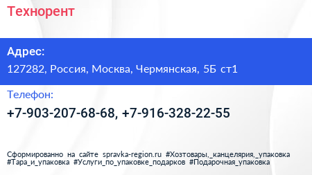 Технорент по адресу 127282, Россия, Москва, Чермянская, 5Б ст1 в дальнейшем Организация, размещена в следующих категориях: