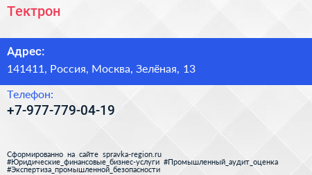 Тектрон по адресу 141411, Россия, Москва, Зелёная, 13 в дальнейшем Организация, размещена в следующих категориях: