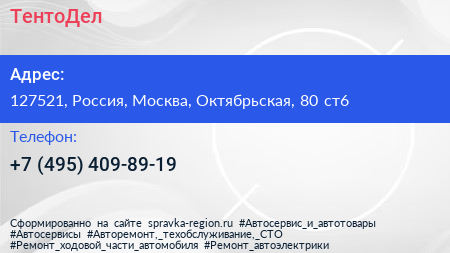 ТентоДел по адресу 127521, Россия, Москва, Октябрьская, 80 ст6 в дальнейшем Организация, размещена в следующих категориях: