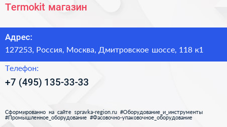 Termokit, магазин по адресу 127253, Россия, Москва, Дмитровское шоссе, 118 к1 в дальнейшем Организация, размещена в следующих категориях: