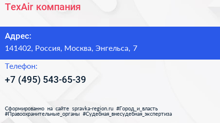 TexAir, компания по адресу 141402, Россия, Москва, Энгельса, 7 в дальнейшем Организация, размещена в следующих категориях: